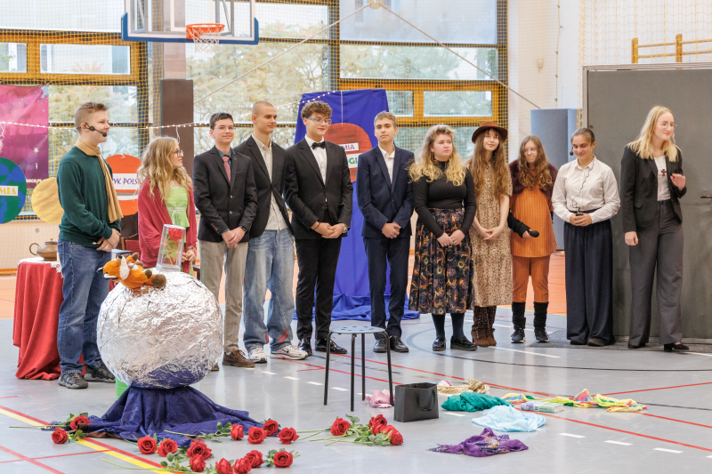 W części artystycznej rozpoczęliśmy wraz z literackim Małym Księciem wędrówkę po planetach wszechświata w celu poszukiwaniu sensu życia. Spotkani tu i ówdzie nauczyciele utwierdzili bohatera, że na pewno nie zostanie jednym z nich, bo to niezwykle skomplikowany zawód. Ale dzięki Róży i Lisowi zrozumiał też, że najważniejsze jest to, co niewidoczne dla oczu, czyli wachlarz najpiękniejszych uczuć jakimi należy kierować się w życiu.